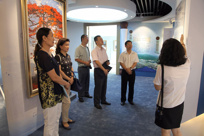 尹援平一行參觀了最近揭牌的“四航展館”,了解了四航局六十多年厚重的發展歷史;參觀了正在舉辦的“中國夢.勞動美.四航情”蔣慶北高鐵主題油畫展,欣賞了高雅藝術走進企業的生動實踐。