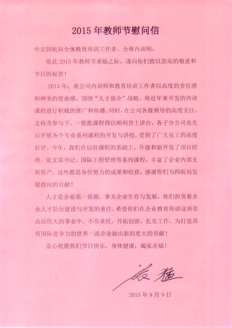 2015年教師節慰問信
