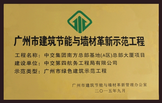 廣州之窗總部大廈榮獲"廣州市建筑節能與墻材革新示范工程"