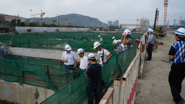 梯隊成員參觀了珠機城際橫琴站基坑項目,重點考察了超深超大基坑的開挖支護形式以及監測儀器的埋設和測量。此外,巖土技術梯隊組織召開了技術交流會,邀請了廣東省水利水電科學研究院名譽院長楊光華教授現場講授“深基坑支護的實踐與理論發展”。楊教授總結了多個深基坑失敗案例原因分析,深入淺出地描繪了巖土科研技術的廣闊發展空間,并與參會人員進行了熱烈的討論。各子公司和研究院5位技術人員,分別針對開展的施工、監測、檢測遇到的技術難題進行了匯報討論,加強了各子公司之間的交流合作。