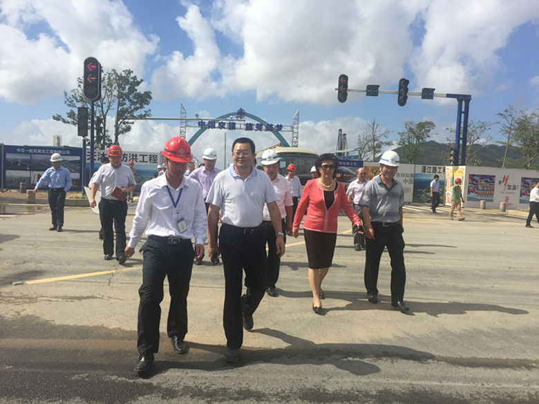 11月17日,珠海市委常委、橫琴新區黨委書記劉佳、橫琴新區管委會主任牛敬、副主任蔡凌燕一行蒞臨四航局珠海市橫琴新區市政道路工程項目濠江路工點檢查指導工作。