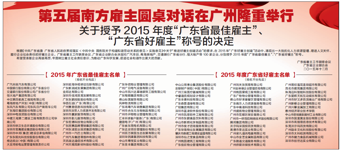 四航局榮獲"廣東省最佳雇主"稱號