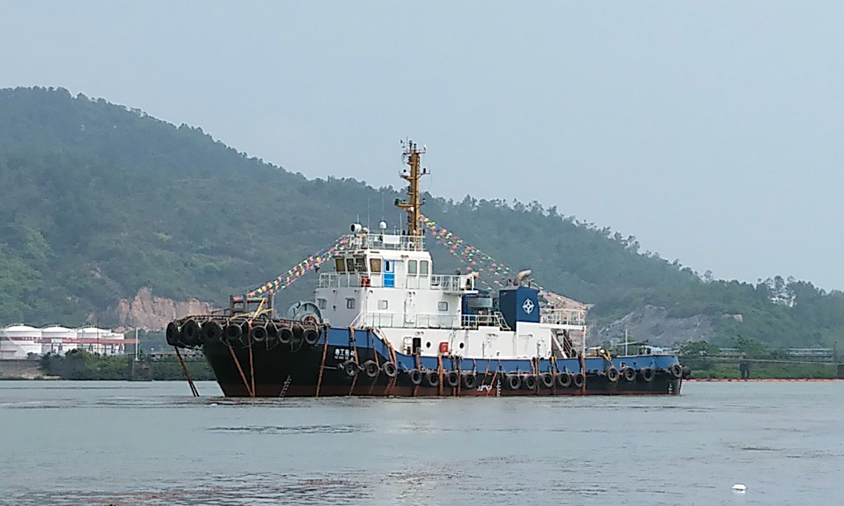 該拖輪型長37米,型寬10.5米,型深4.9米,設計吃水3.9米,入級中國船級社(CCS),最大航速為12.5節,續航距離約1500海里,可在無限航區調遣,并在Ⅰ類航區從事拖帶作業。該船配備雙全回轉舵槳裝置,正拖拖力51噸,倒拖拖力45噸,主要用于港內拖航作業,協助大型貨船靠離碼頭。