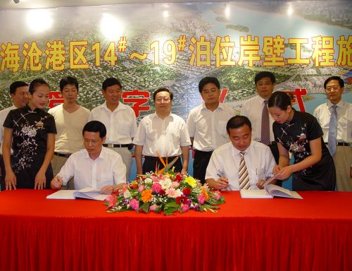 7月7日,廈門港海滄港區14-19#泊位岸壁工程合同簽字儀式舉行,局長、黨委書記梁卓仁代表我局在18、19#泊位的合同書上簽字。中共廈門市委常委、海滄投資區書記鐘興國,我局副局長黃煥謙,福州分公司總經理利勇剛等出席了簽字儀式。