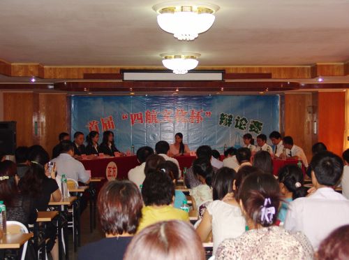 首屆"四航文化杯"辯論賽半決賽結果于日前揭曉,二公司和三公司獲勝,將于9月4日舉行決賽。上圖為三公司和研究院半決賽場景。 (鄧騰光)